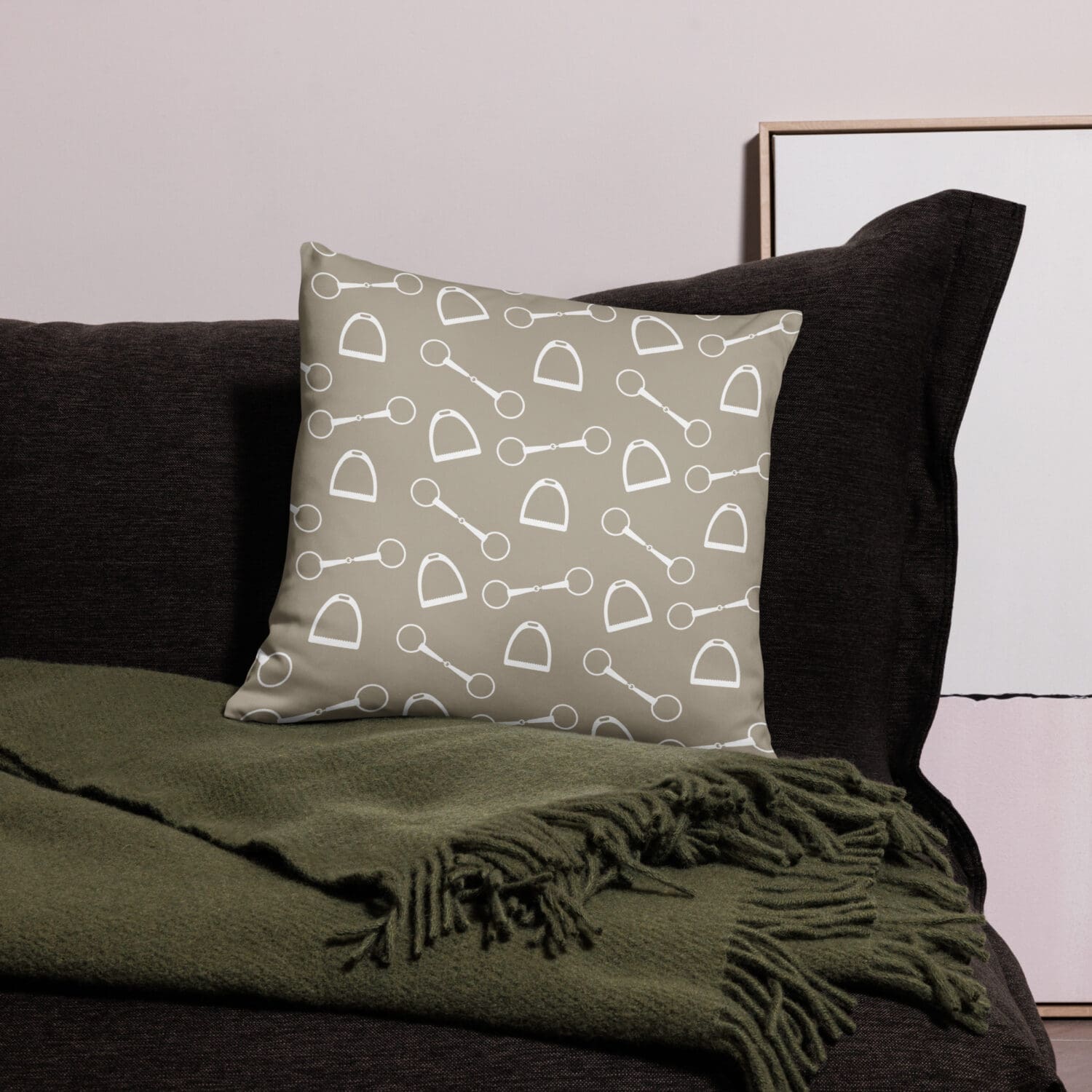 Detta khakifärgade kuddfodral i vår produktserie Bit of Joy ger din soffa eller fåtölj en riktigt hästig känsla.