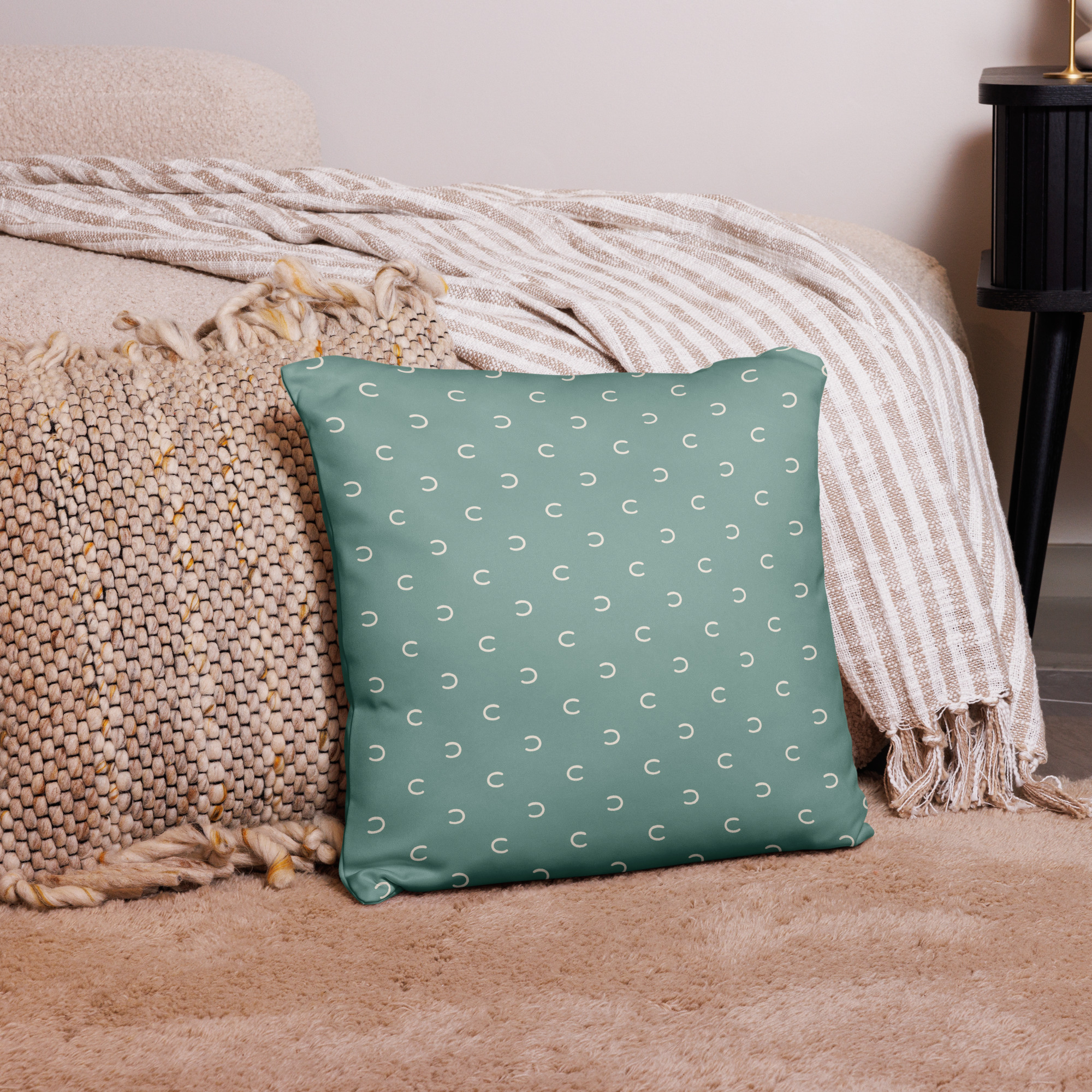 Ett kuddfodral i färgen grön i vår produktserie “Hoof Print” i färgpaletten “Vårgrönska”.