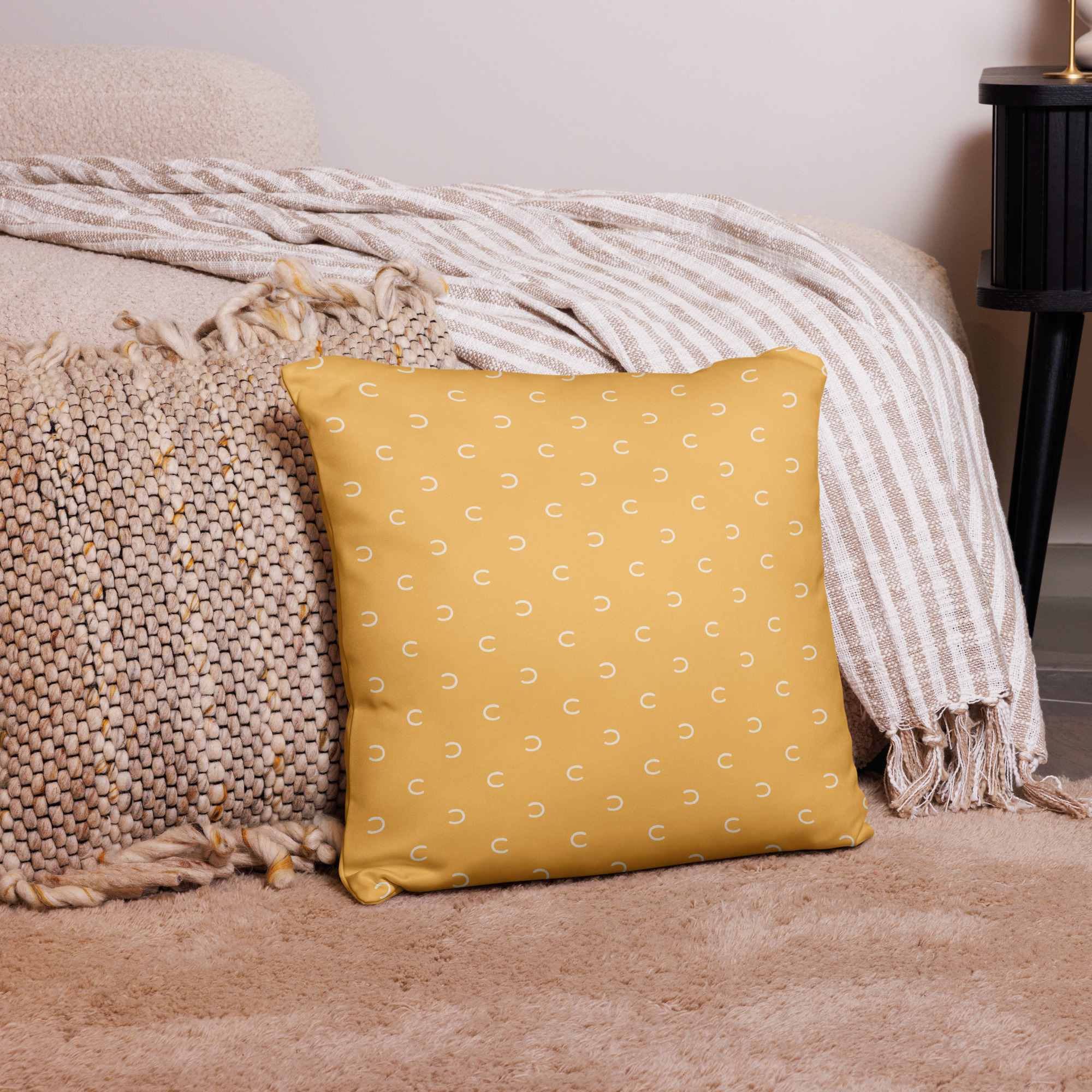 Ett kuddfodral i färgen gul i vår produktserie “Hoof Print” i färgpaletten “Vårgrönska”.