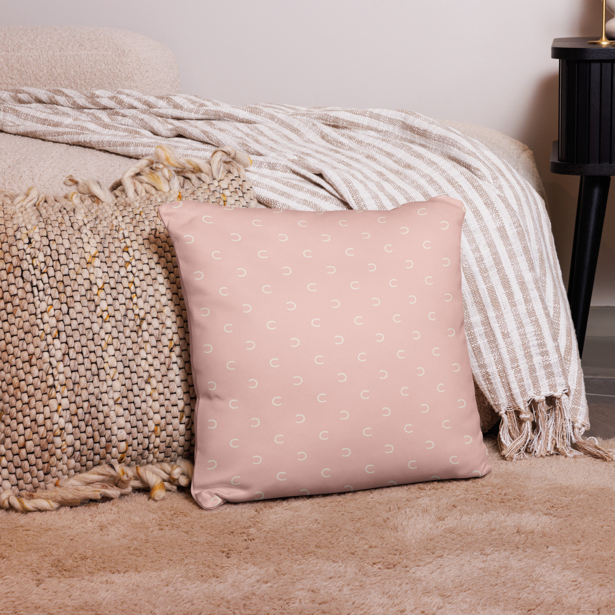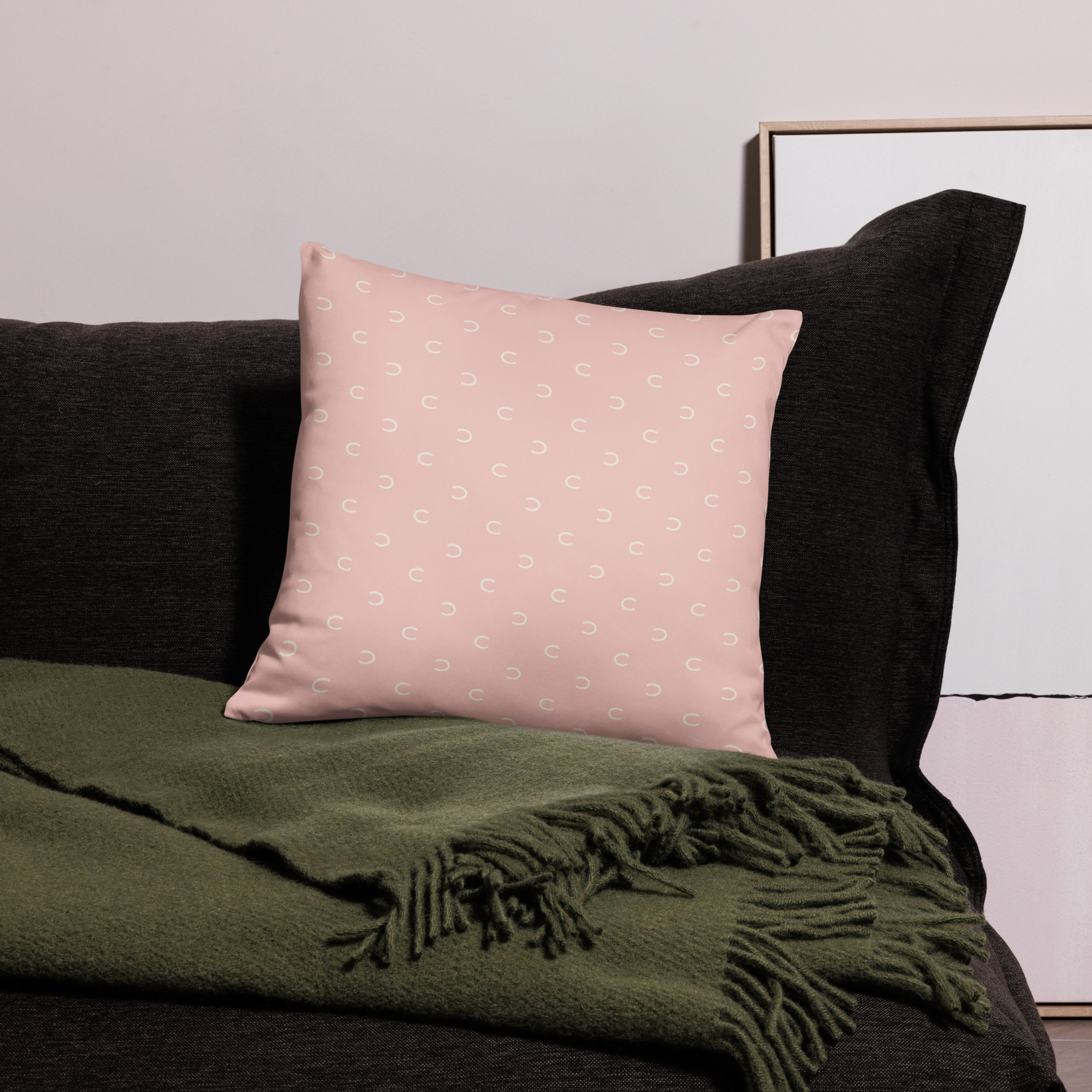Ett kuddfodral i färgen rosa i vår produktserie “Hoof Print” i färgpaletten “Vårgrönska”.