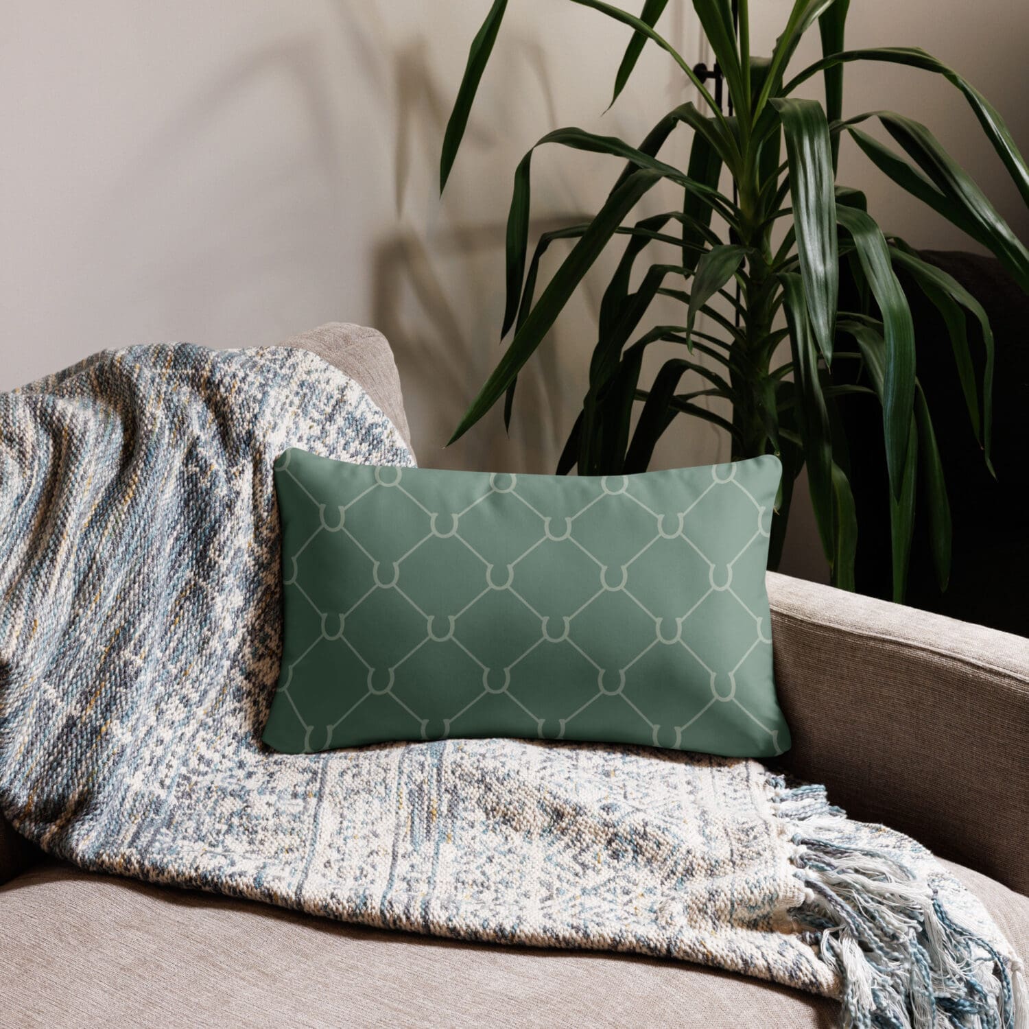 Ett grönt kuddfodral i 3 olika storlekar i vår serie Stride with Style med stilrent hästskomönster.