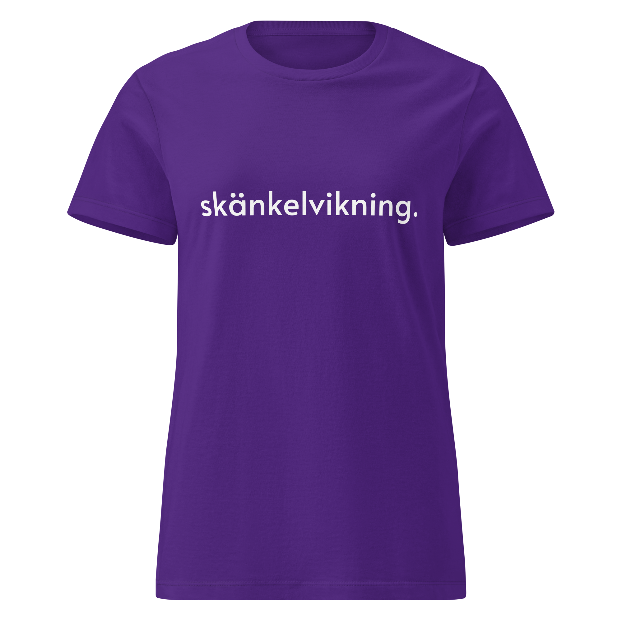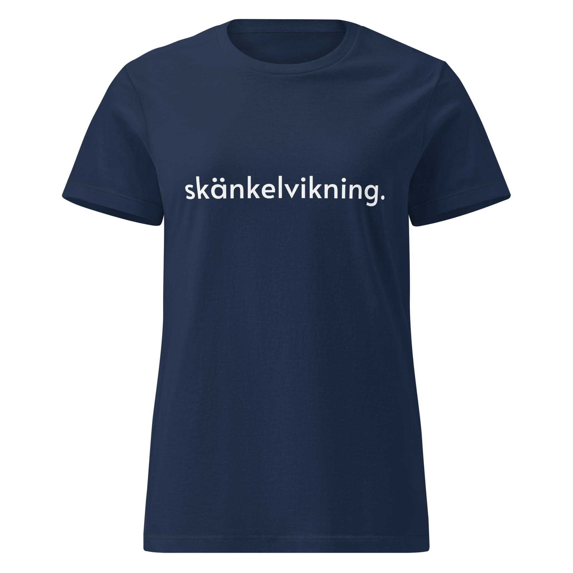 T-shirt i dammodell med vitt tryck med texten ”Skänkelvikning”.