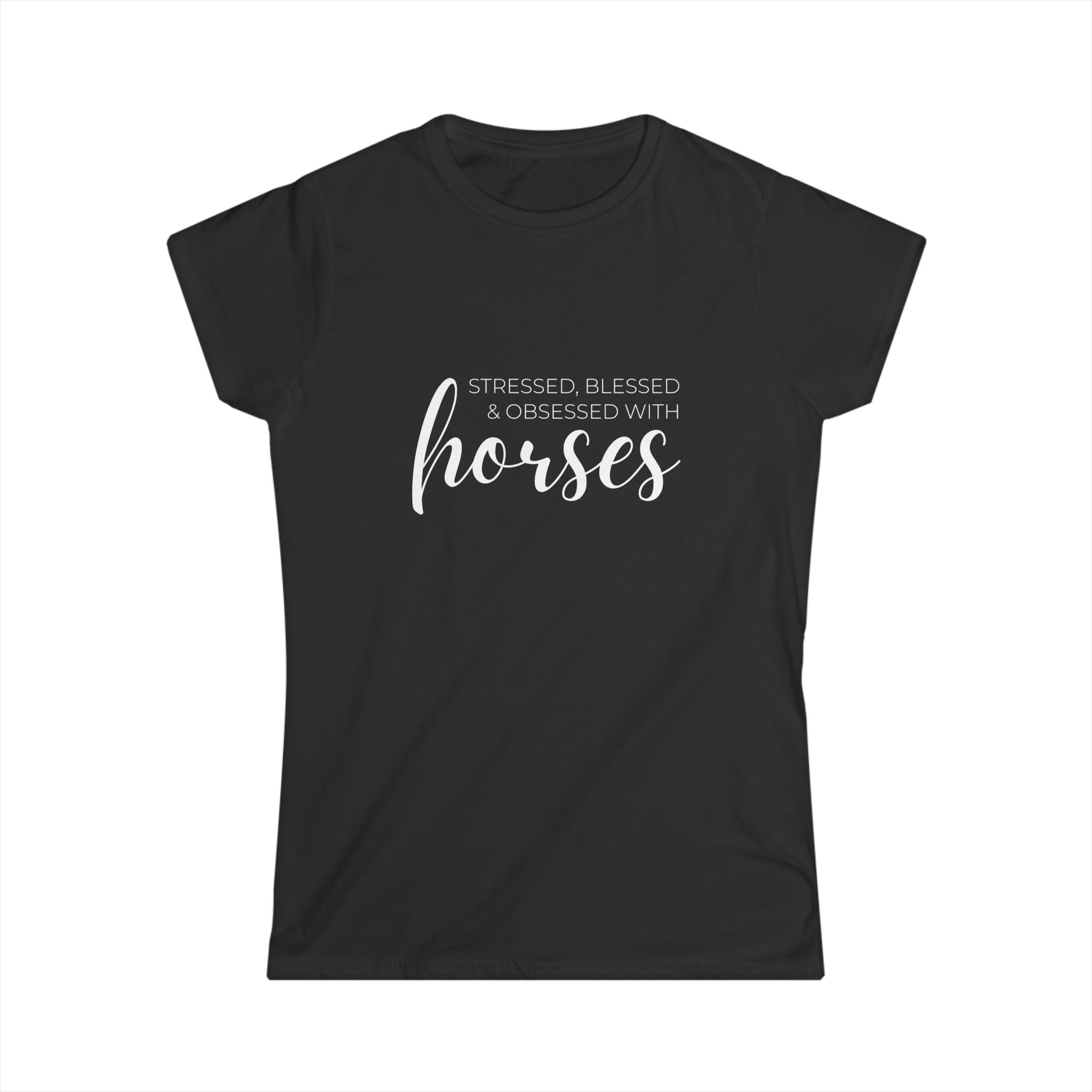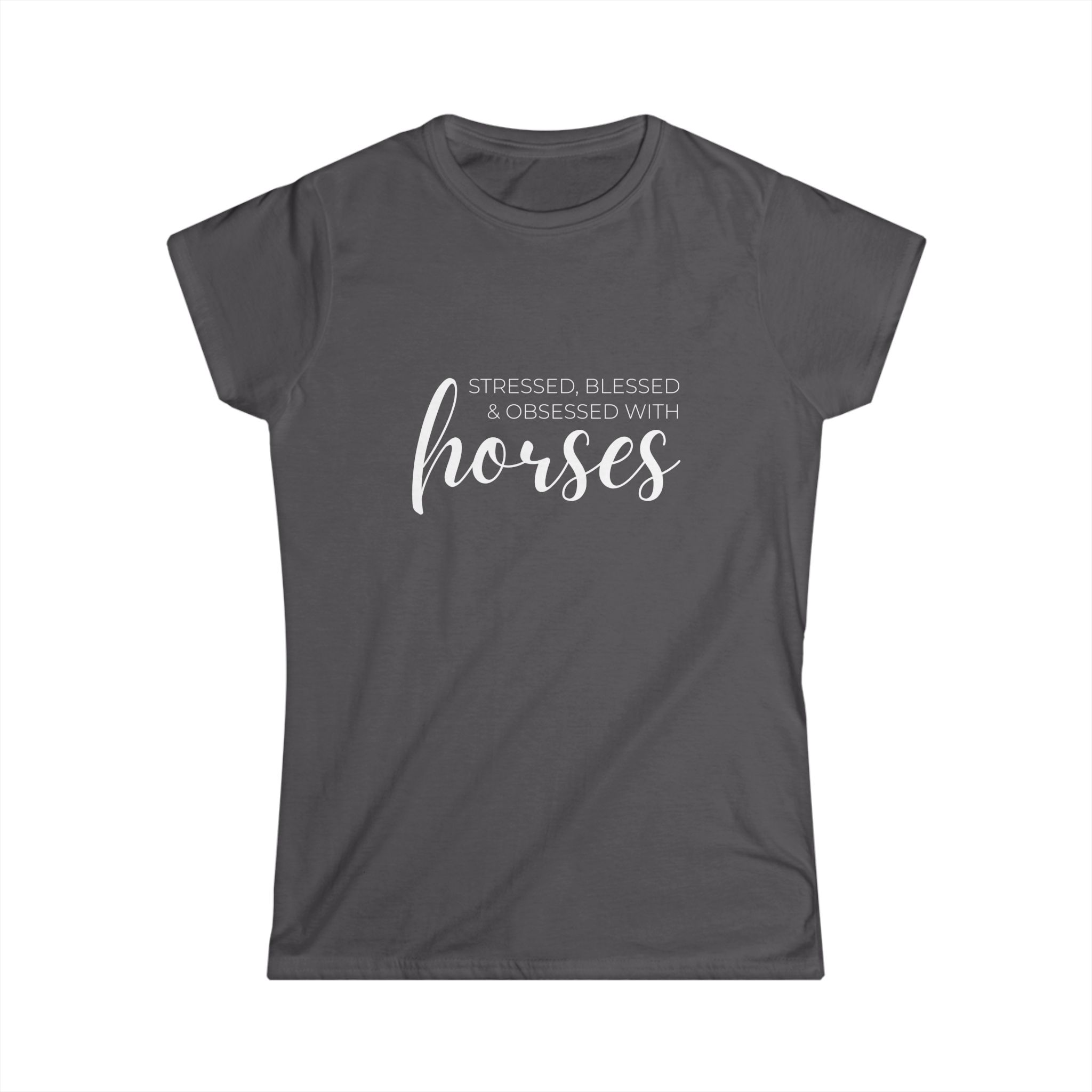 T-shirt Dammodell ”Stressed, blessed and obsessed with horses”