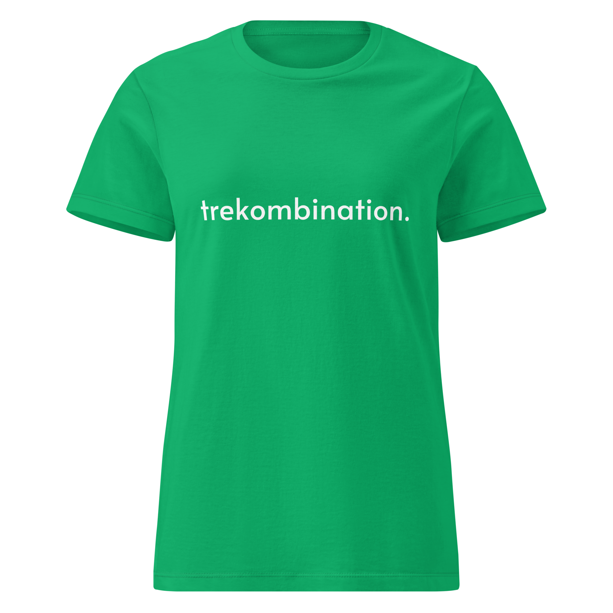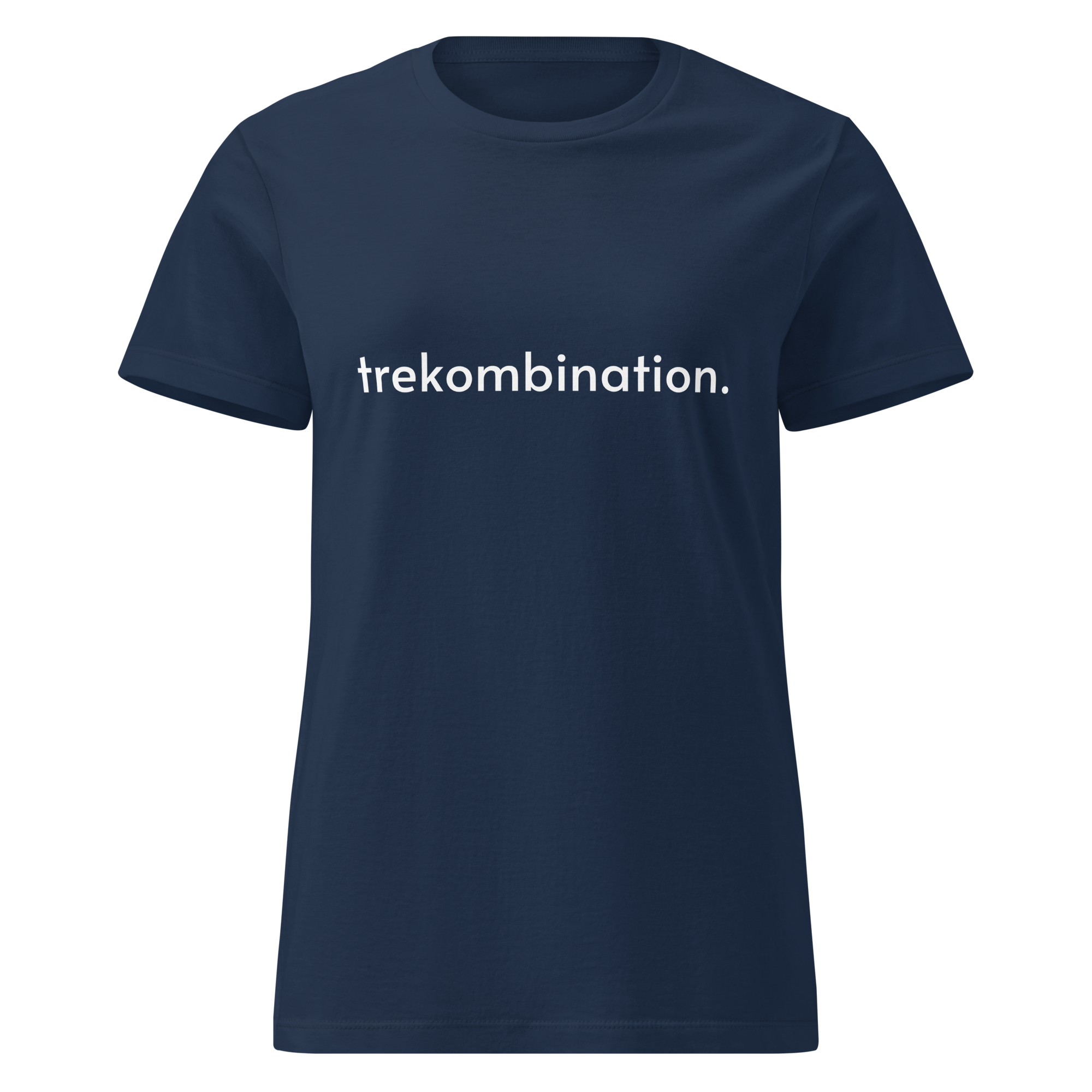 T-shirt i dammodell med vitt tryck med texten ”Trekombination”.